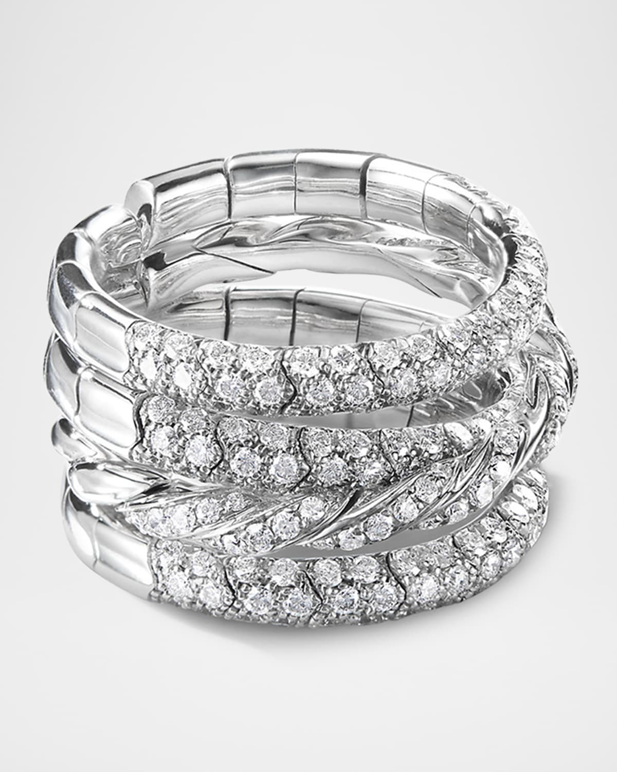 Paveflex Four Row Ring with Diamonds in 18K White Gold, 14mm