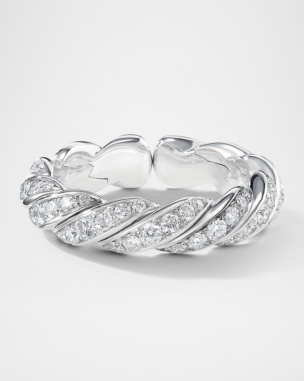 Sculpted Cable Flex Band Ring in 18K White Gold with Diamonds, 5mm