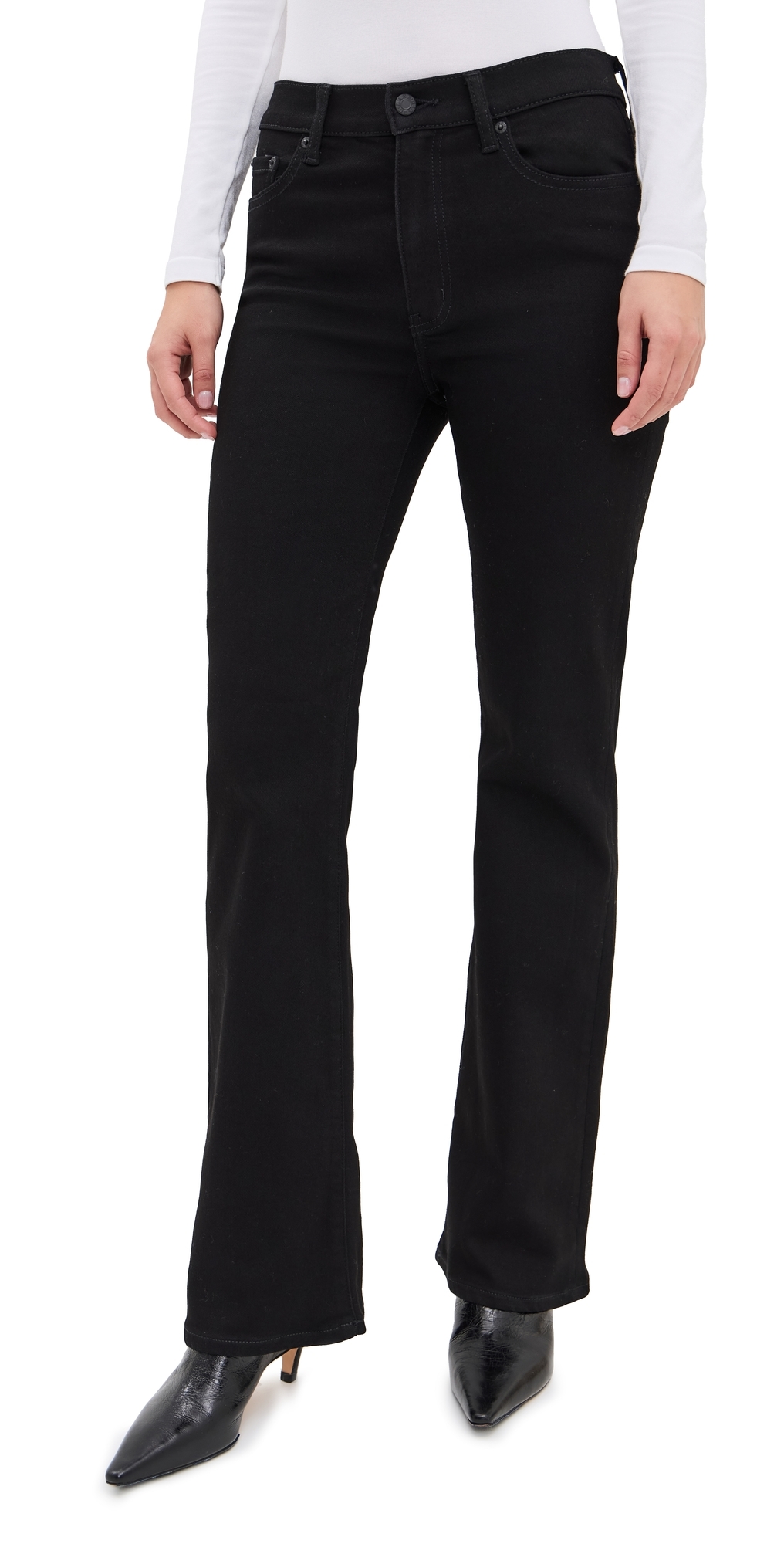 Fabric: Mid-weight, stretch denim. Button closure and zip fly. 5-pocket styling. Shell: 66% cotton/30% polyester/3% viscose/1% spandex. Wash cold. Imported, Vietnam. Measurements: Measurements from size 24 Rise: 9.75in / 25cm Inseam: 32.25in / 82cm Leg opening: 17.25in / 44cm