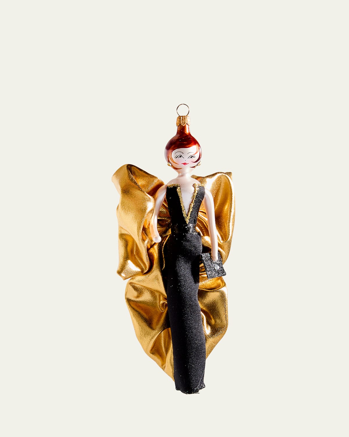 Fashionista ornament handcrafted of mouthblown glass, polyester and noncorrugated paper Approx. 4.3"L x 2.4"W x 6.3"T Made in Italy