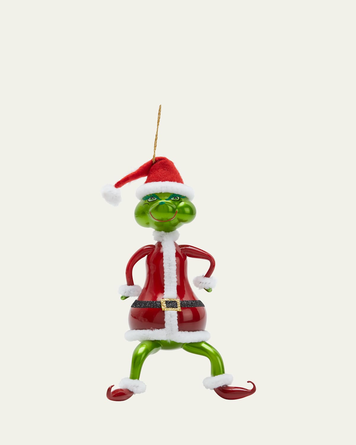 Grinch ornament handcrafted of glass and felt Approx. 2.4"L x 3.9"W x 6.7"T Item Weight (Lbs.): 0.1 Made in Italy