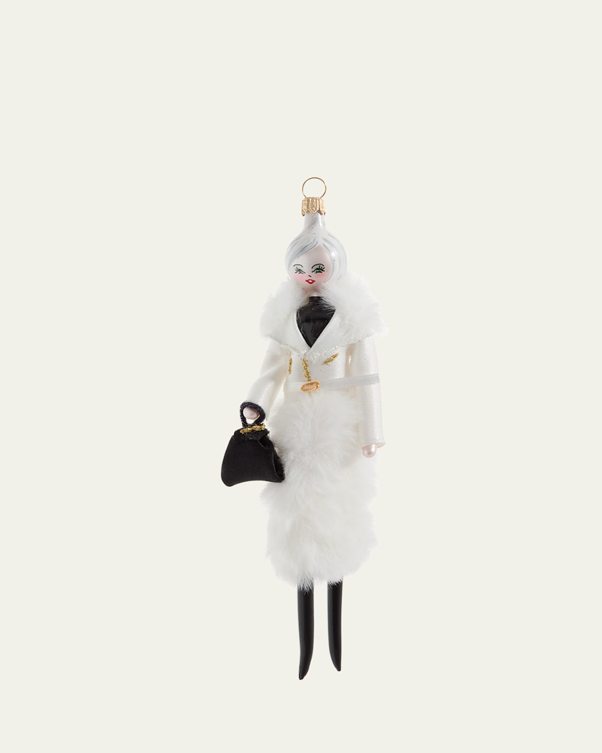 Crafted of glass, polyester, and faux fur (polyester), this Linda Fashionista ornament is ready for a day of shopping! Approx. 6"L x 5"W x 16"T Dust with a soft cloth Handle with care Made in Italy