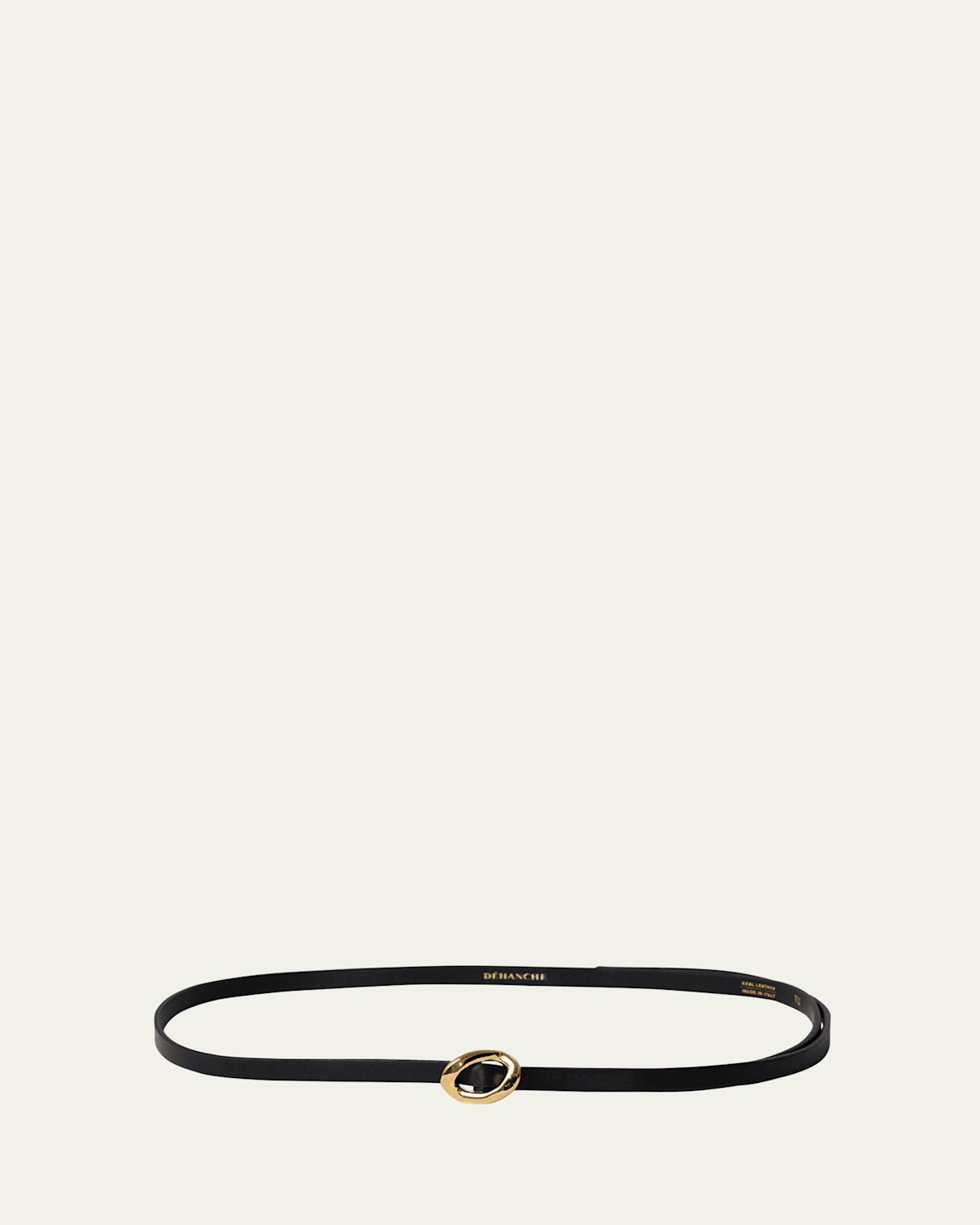 Dehanche "Orbite" skinny leather belt Approx. 0.8"W Goldtone buckle closure Cut to size Leather/zamak Spot clean Made in Italy
