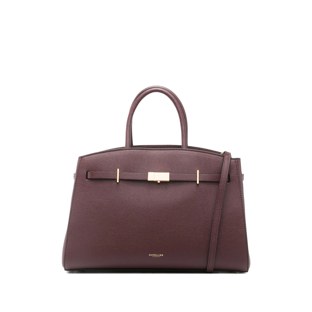 burgundy grainy leather two top handles clasp fastening adjustable detachable shoulder strap structured shape