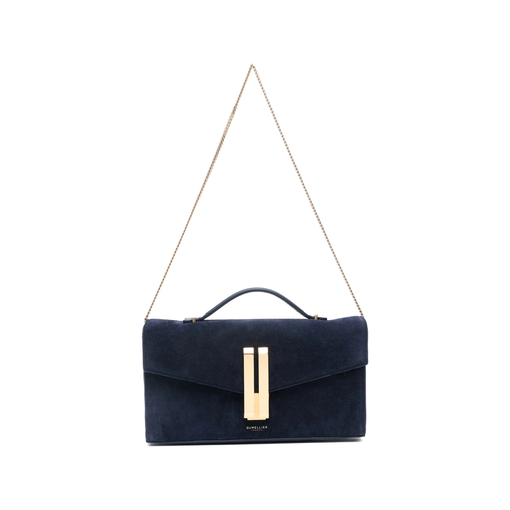 blue gold-tone hardware top handle chain-link shoulder strap foldover top clasp fastening This piece comes complete with a protective dust bag.