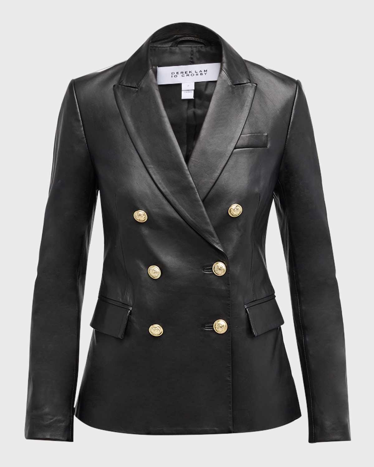 Derek Lam 10 Crosby "Franklin" jacket featuring goldtoned embossed buttons in leather Doublebreasted front Standard notch lapels Front flap and welt pockets Tailored fit Buttonfront closure Leather Professional cleaning recommended Imported Size Note: Height: 5'9"/ waist 24"/ hips 36"/ bust 32" Model is wearing size 2