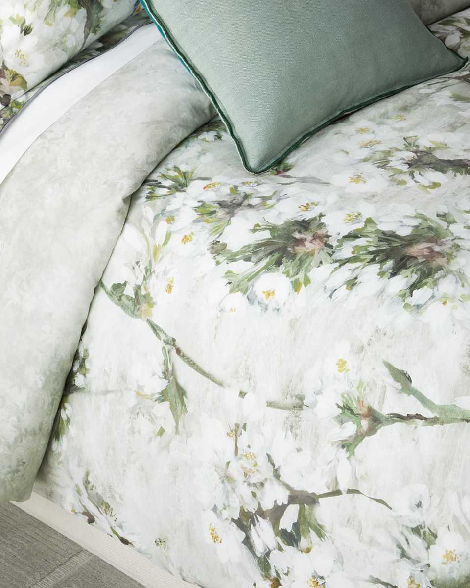 Duvet cover is made of cotton 300 thread count Approx. 88" x 96" Machine wash cool, tumble dry Do not bleach Made in Portugal