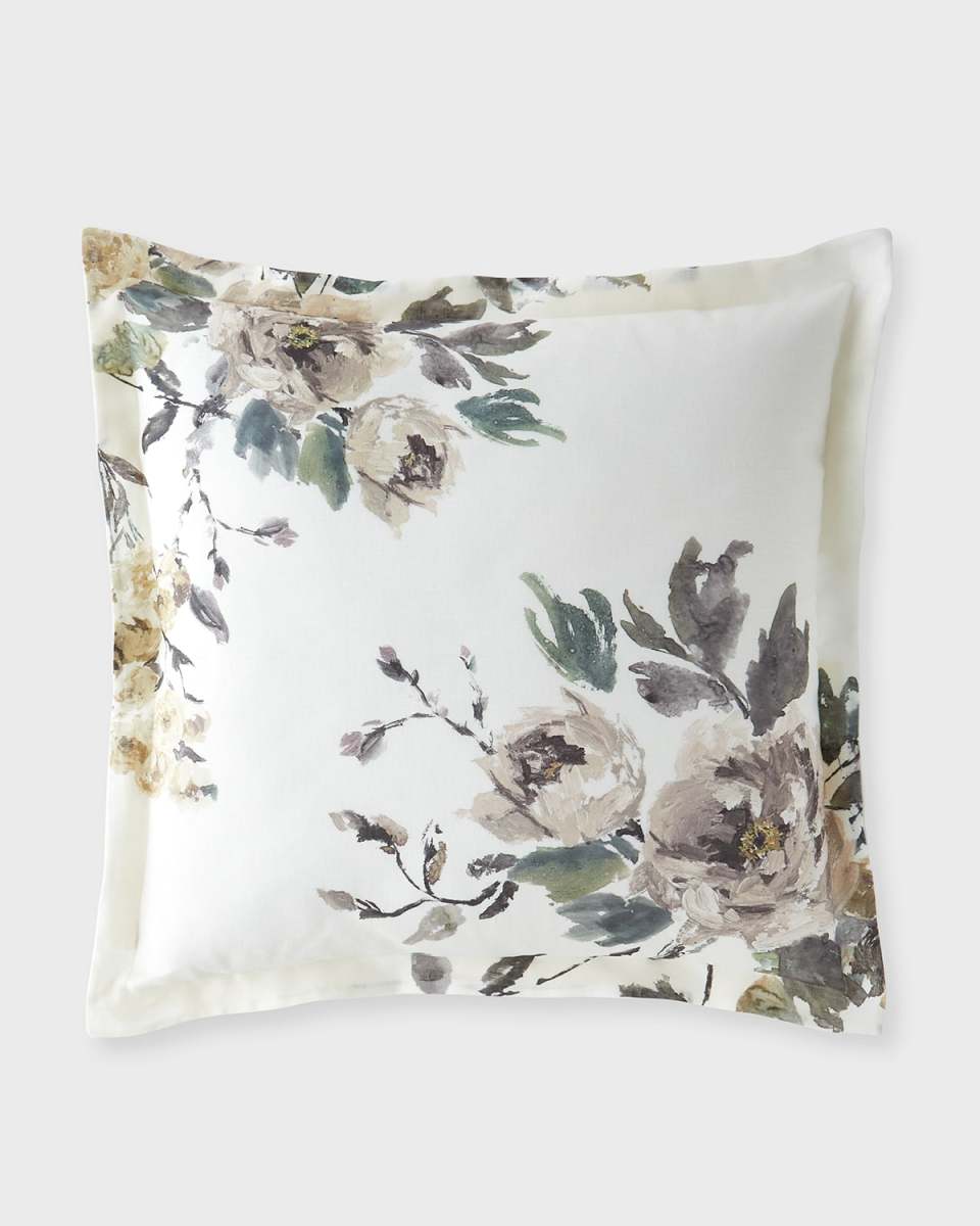 Pillow made of painterly floralprint linen Reverses to a coordinating neutral tone Satintrim flange Approx. 26" sq. Machine wash Made in Spain