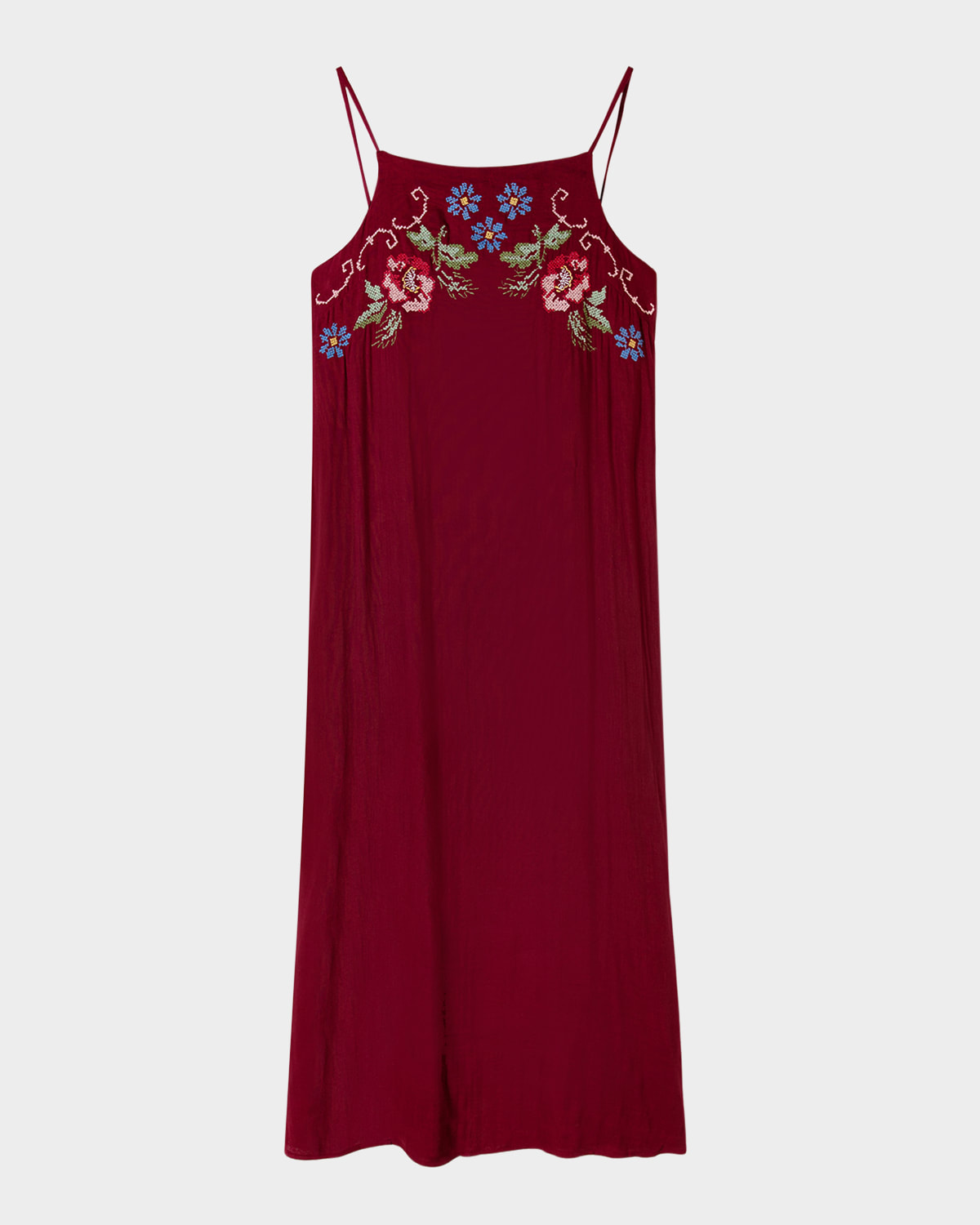 Desmond amp; Dempsey nightie embellished with floral cross stitching along the front Approx. 46.8"L (XS) 48.8"L (XXL) from shoulder to hem Square neckline Adjustable straps Doublelined front Lowcut back Falls below the knee Shift silhouette Slipover style Cotton/viscose Imported
