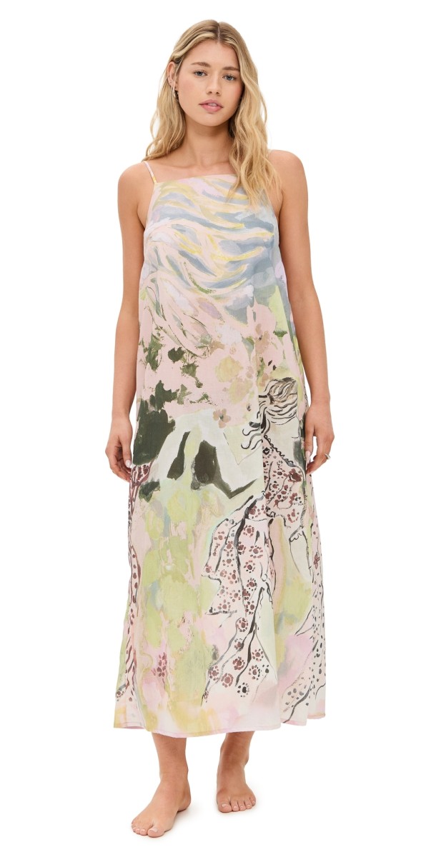 Fabric: Lightweight, non-stretch voile. Abstract print. Square neckline. Adjustable shoulder straps. Pullover design, no closure. Shell: 100% cotton. Partially lined. Wash cold. Made in Portugal. Measurements: Measurements from size S Length: 52in / 132.0cm, from shoulder