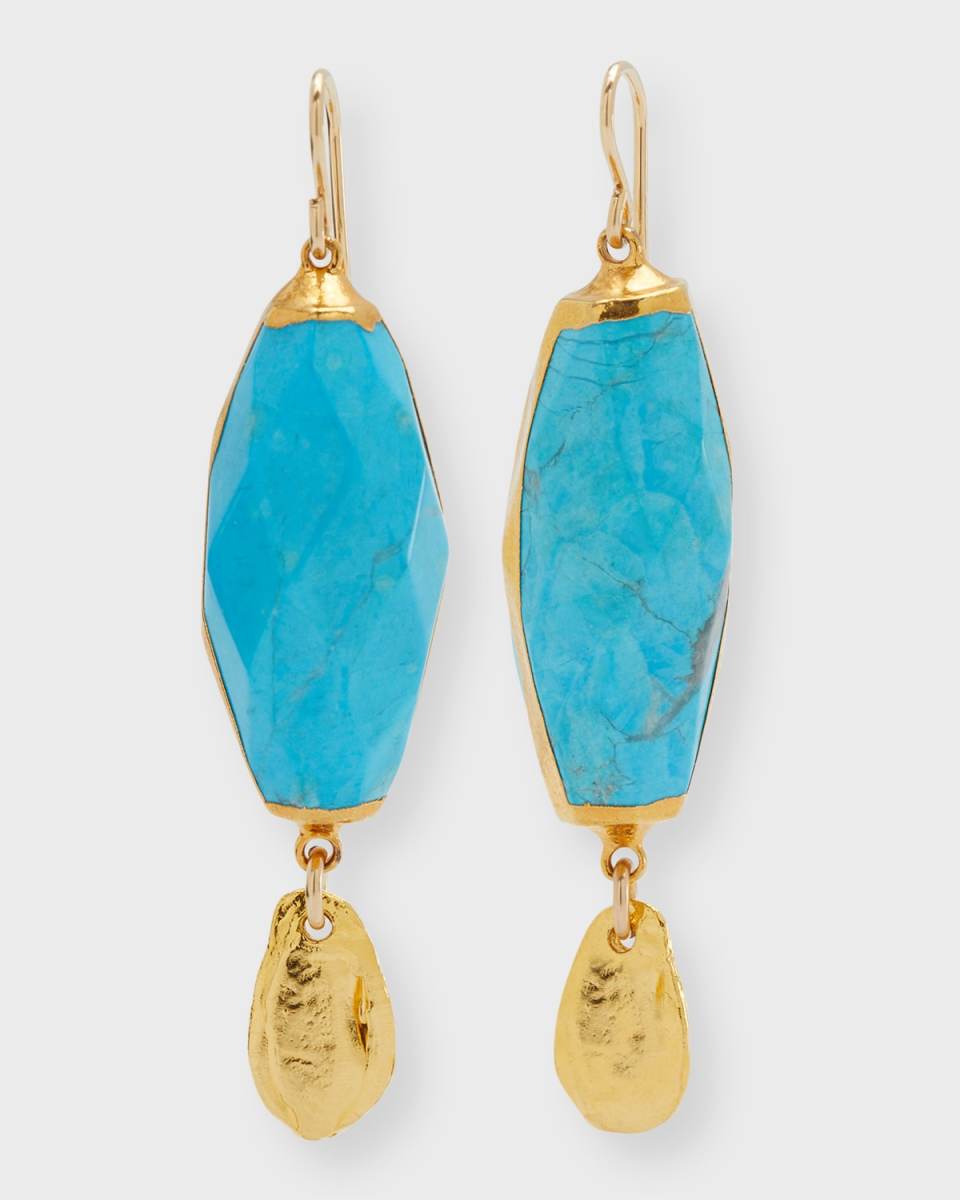 Devon Leigh earrings Approx. 2.25" long 18karat goldplated brass Faceted turquoise For pierced ears Made in USA