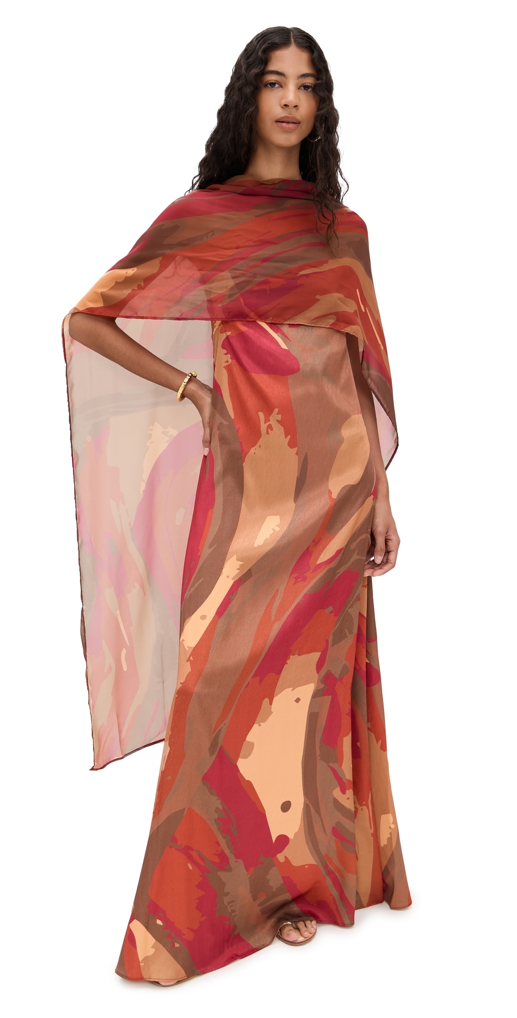 Fabric: Lightweight, non-stretch satin jacquard. Abstract print. Chiffon scarf included. Maxi length. Strapless. Sleeveless. Partial elastic band at back. Shell: 96% polyester/4% spandex. Double-layered at bust. Wash cold. Imported, Senegal. Measurements: Measurements from size XS Length: 49.25in / 125.0cm, from center back