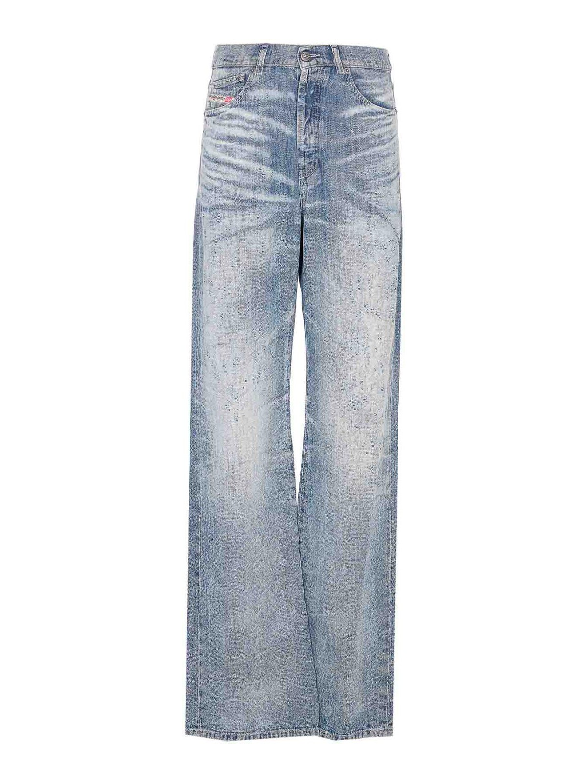 Jeans Diesel en jean D-Sent-FSH avec logo, boutons et poches, effet vieilli, logo, taille haute, jambe droite