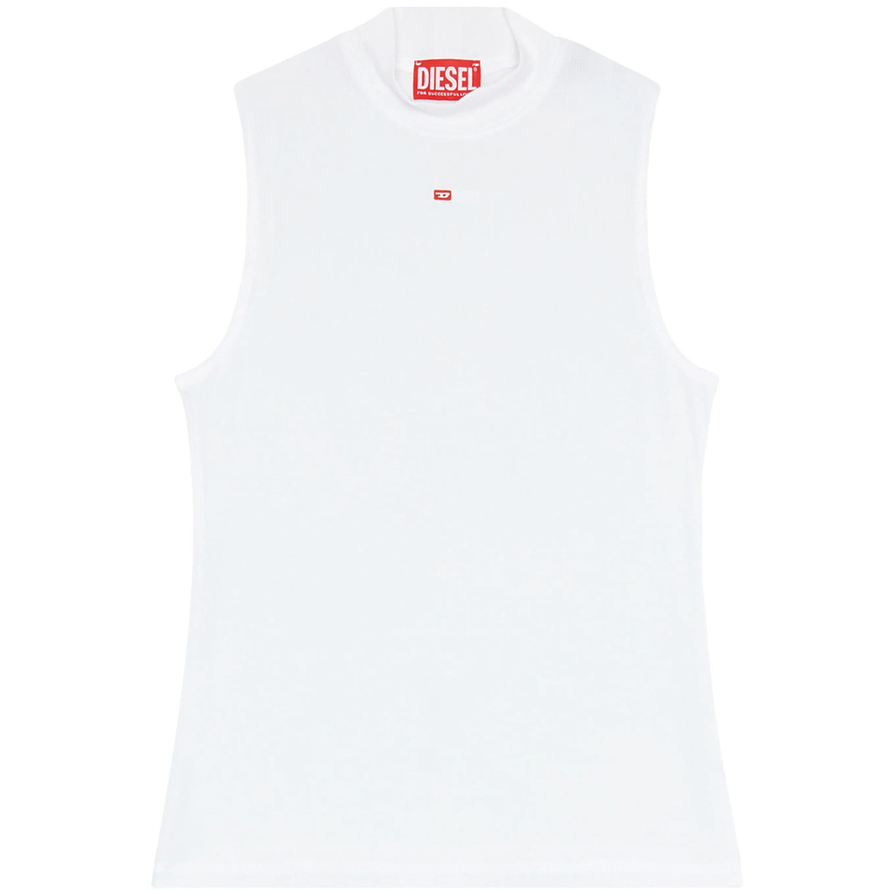 optical white stretch-design embroidered logo to the front mock neck sleeveless straight hem