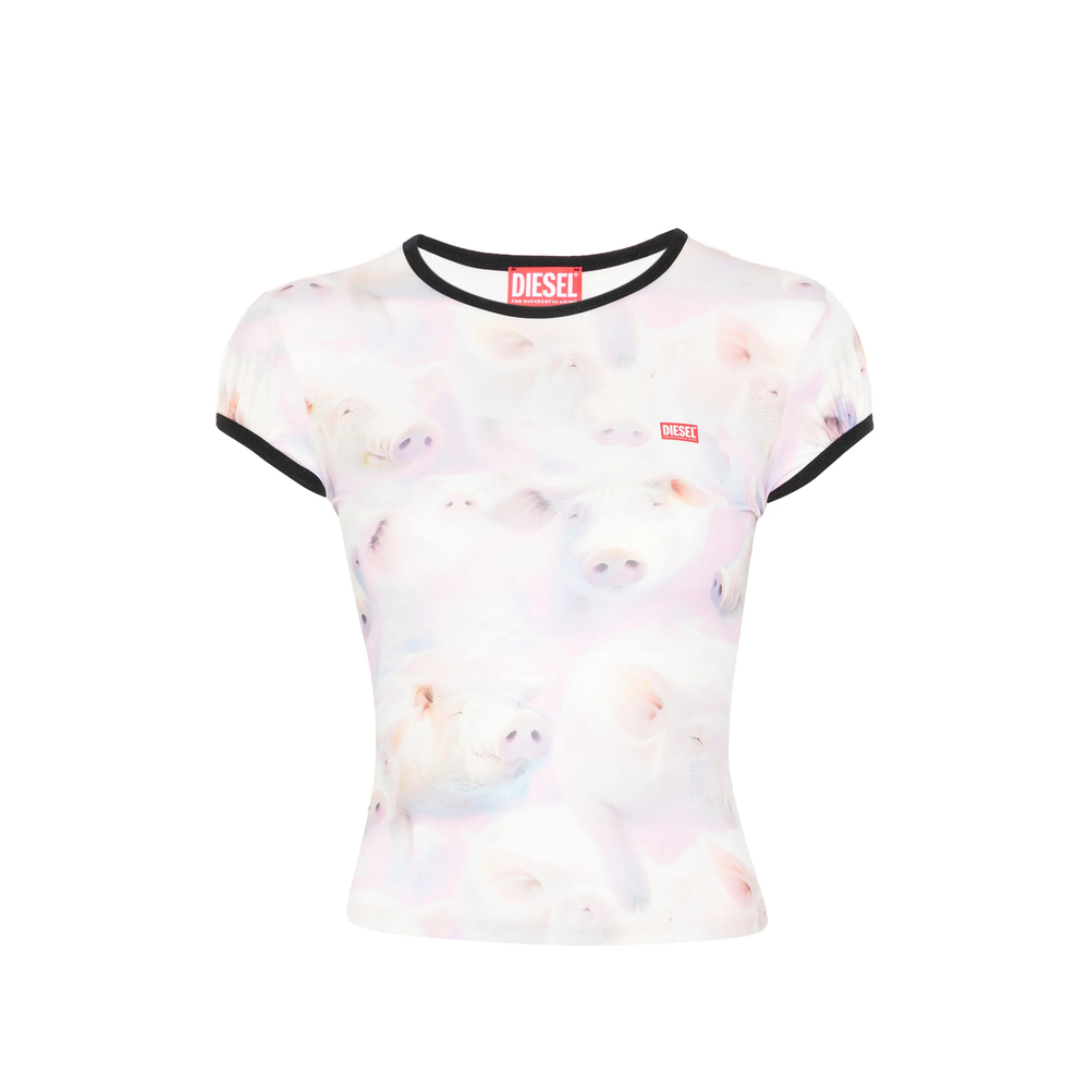 off-white printed ringer trim short sleeves round neck