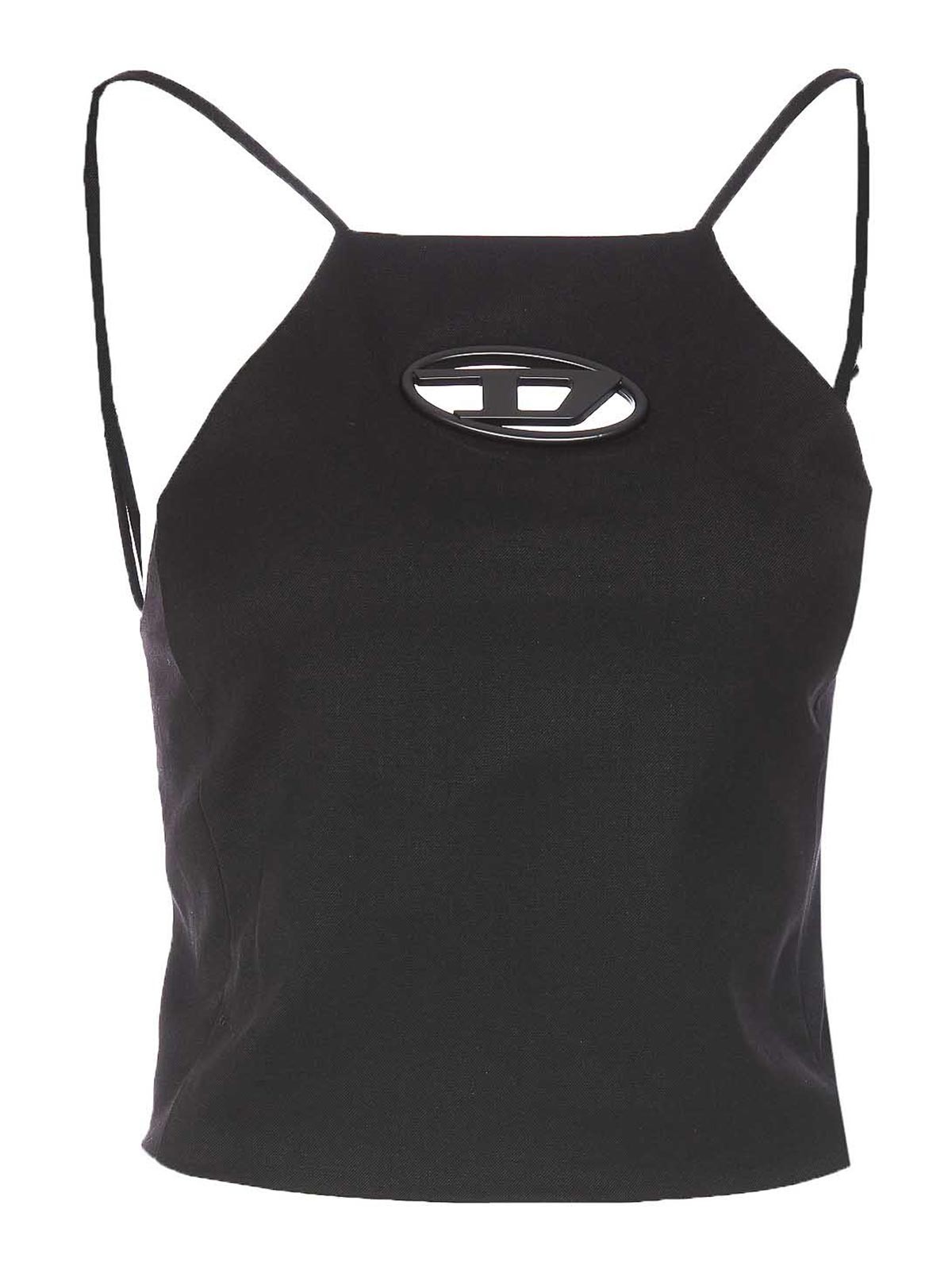 Top Diesel noir à col licou avec plaque à logo sans manches