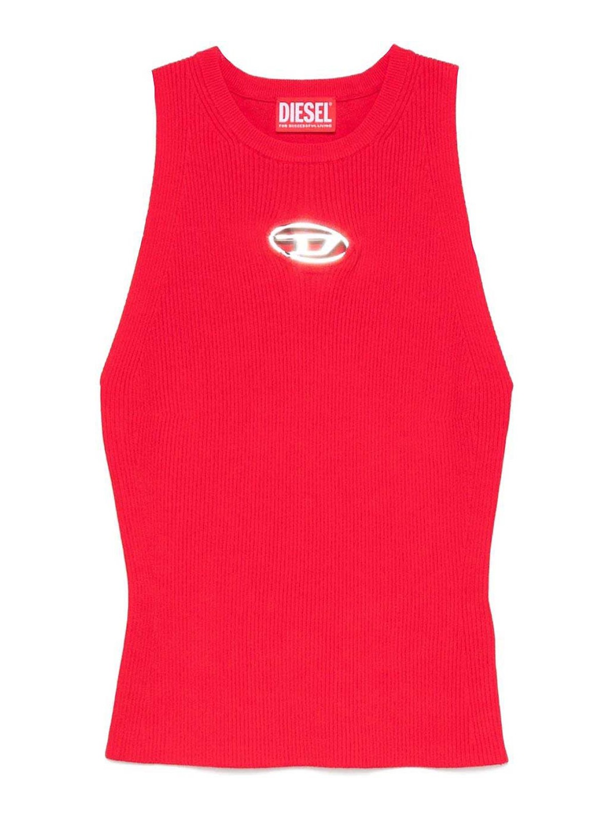 Logo rouge sans manches à col rond et détail du logo ajusté