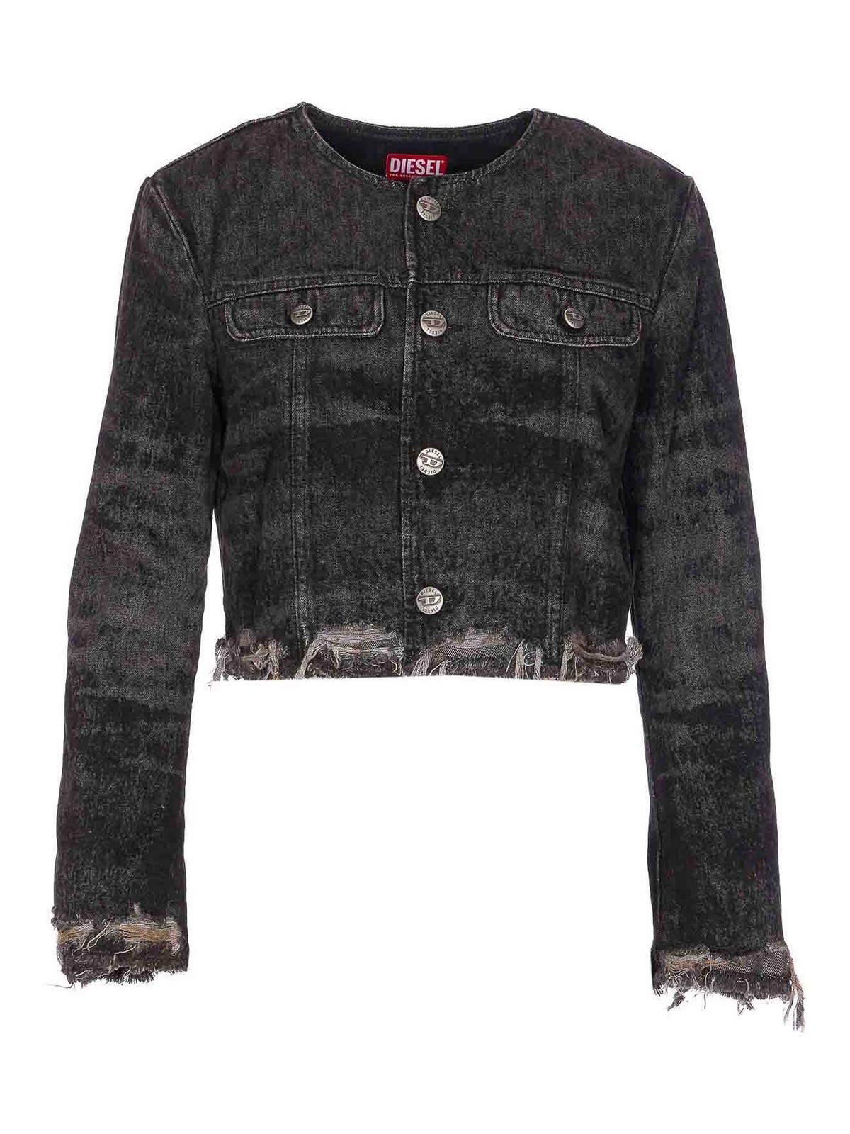 Veste en jean Diesel noire anti-graffiti à boutons, manches longues et col rond, modèle court vieilli, nom du créateur: noir