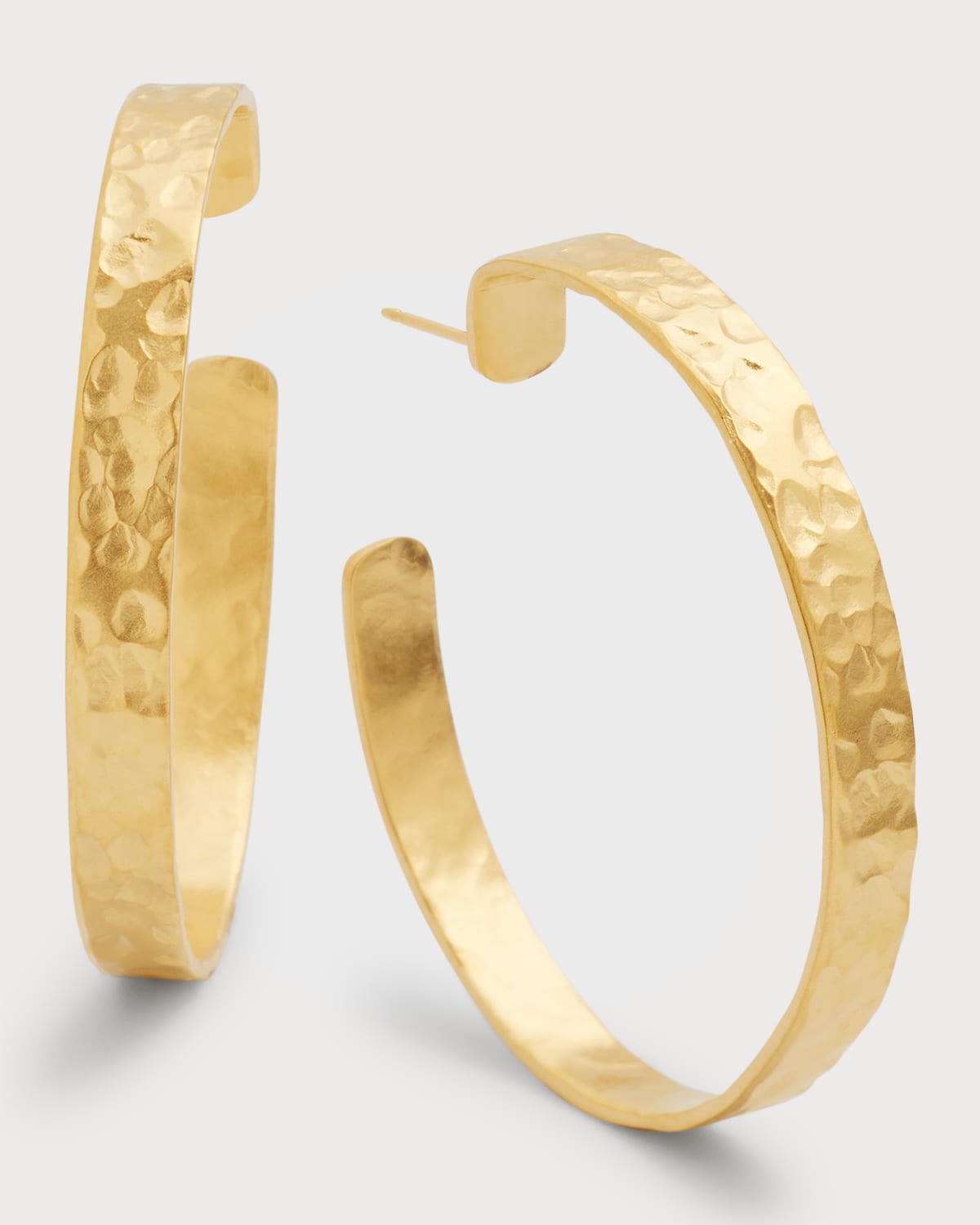 Dina Mackney hoop earrings. 18karat yellow gold plating. Post backs for pierced ears. Approx. 1 1/8" diameter. Made in USA.