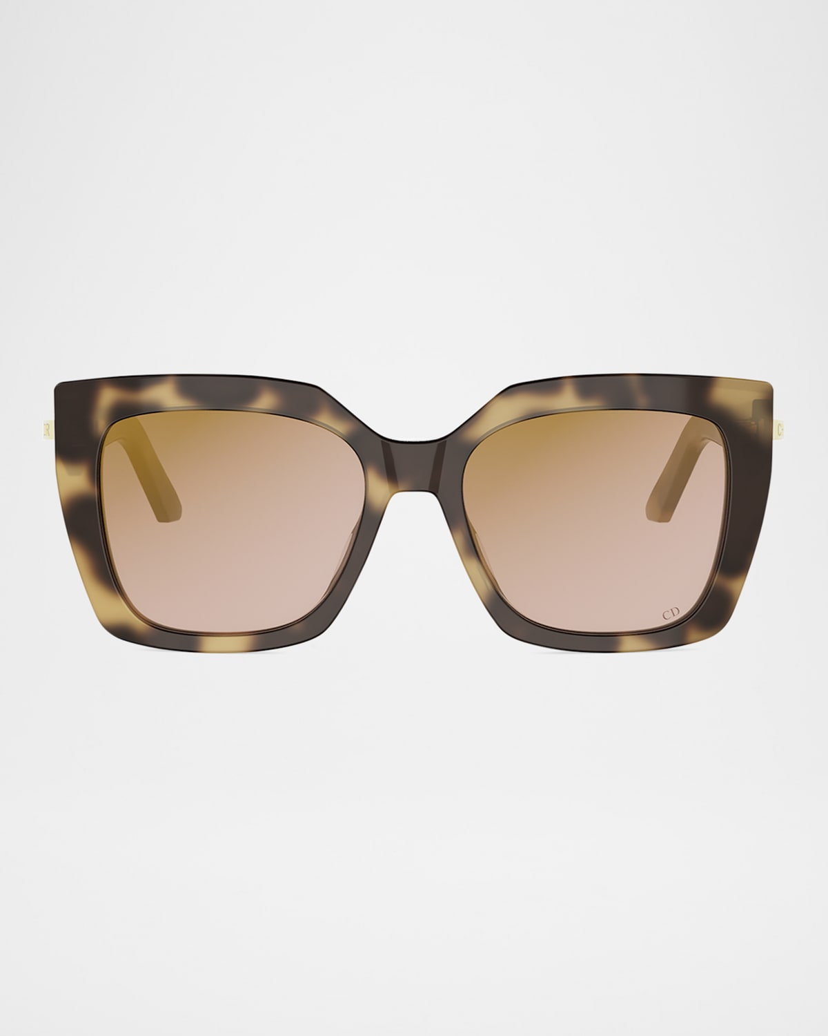 DIOR "CDior S5I" square sunglasses in tortoiseshell acetate CD hinge logo, Christian Dior photoengraved logo on temples, Christian Dior laser logo on lens. CD laser logo on top nose. Lens/bridge/temple (in mm): 5518140 Gradient lenses; CD logo on corner Saddle nose bridge Thin, tapered arms 100% UVA/UVB protection Made in Italy