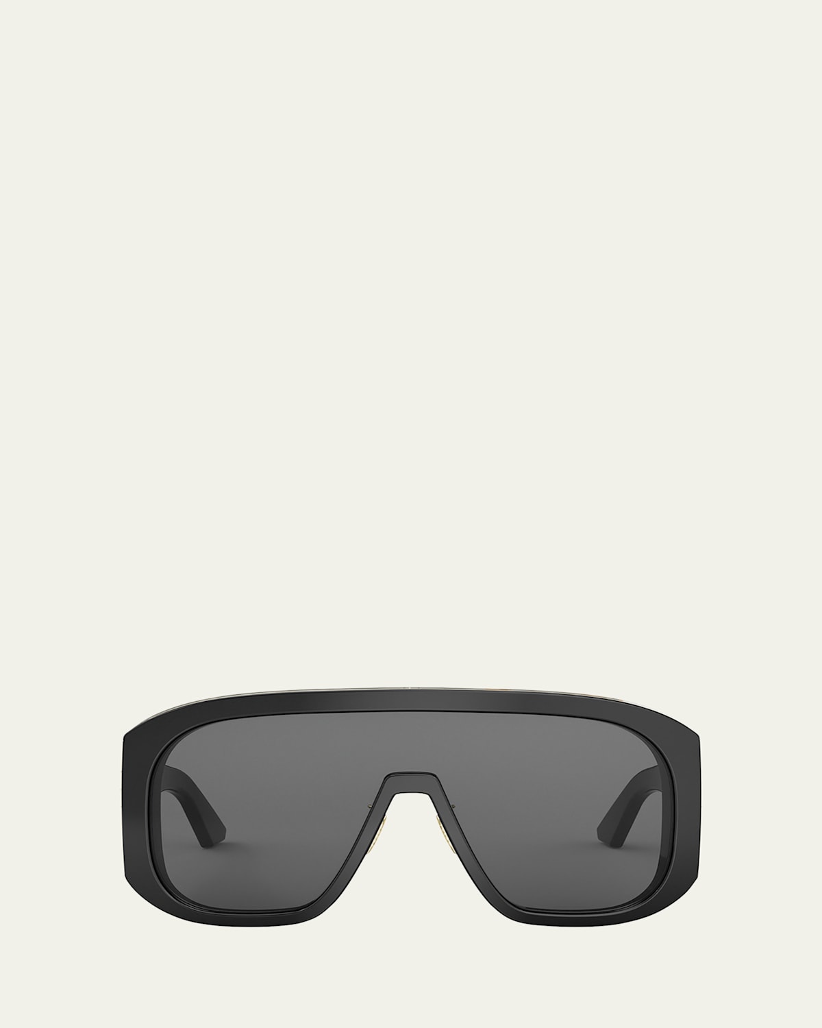 Dior "Diorgraphique M2U" shield sunglasses in plastic Seen at the SpringSummer 2025 fashion show Eye/bridge/temple (in mm): 1340130 Solid lenses Adjustable nose pads Wide, tapered arms Bold logo on the temples Plastic 100% UVA/UVB protection Made in Italy