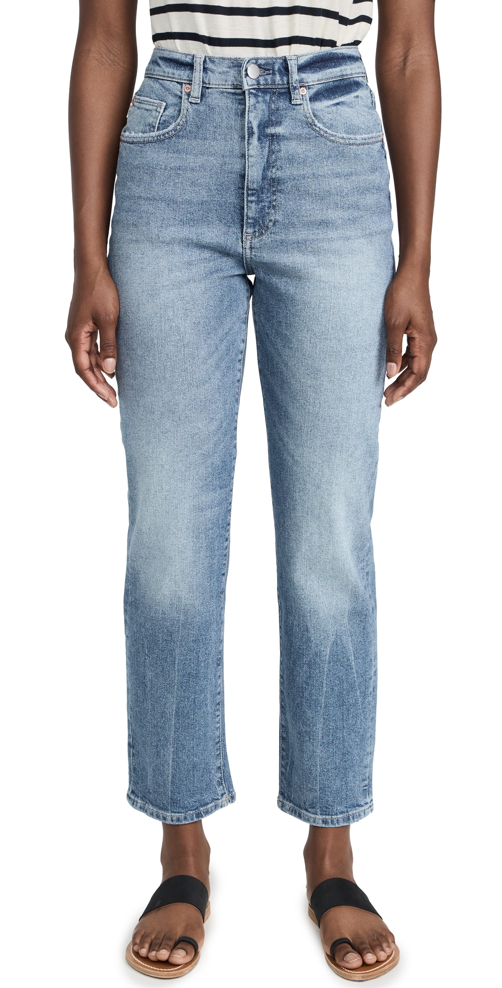 Fabric: Mid-weight, non-stretch denim. DL1961 is part of The Climate Pledge, a commitment to reaching net-zero carbon emissions by 2040. Fading and whiskering. Ankle length. Button closure and zip fly. 5-pocket styling. Shell: 99% cotton/1% lycra spandex. Wash cold. Imported, Pakistan. Measurements: Measurements from size 25 Rise: 11in / 28cm Inseam: 27.5in / 70cm Leg opening: 14.25in / 36cm