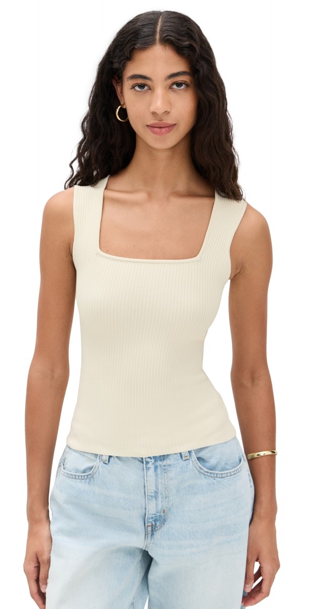 DL1961 Instasculpt Rib Square Neck Top Ecru (Instasculpt Rib)
