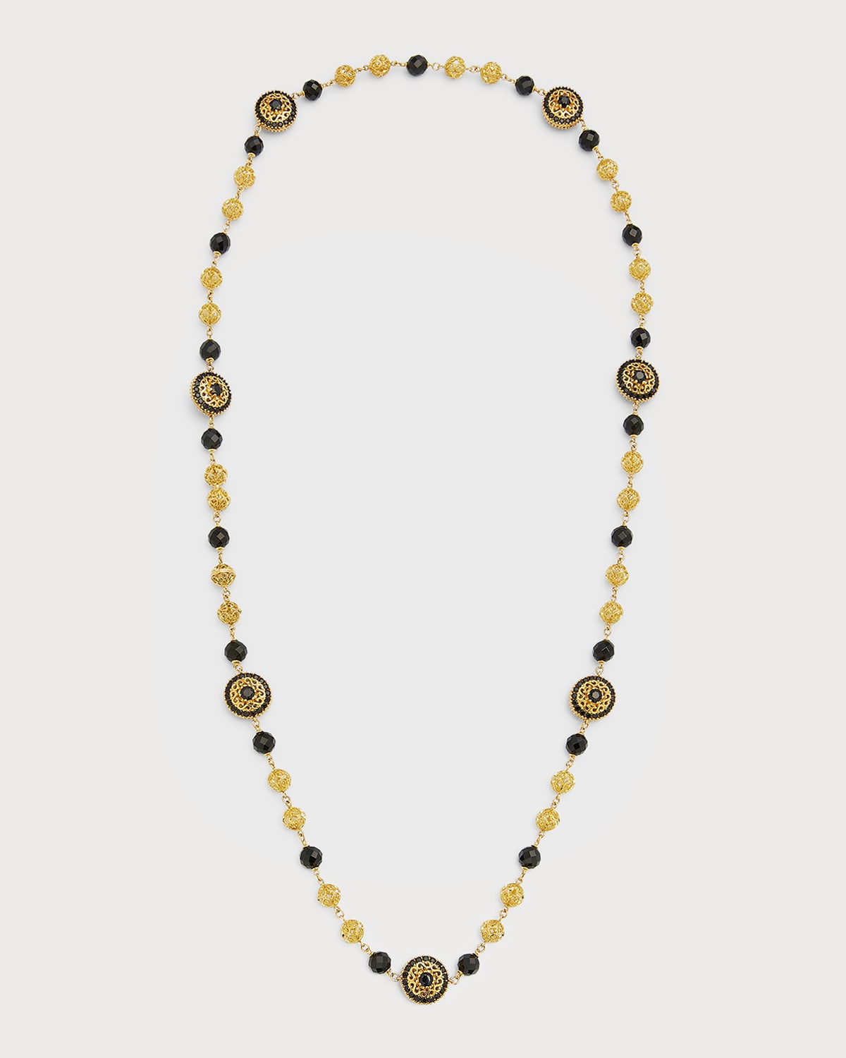 18K Yellow Gold Black Jade and Black Sapphires Necklace, 80cm