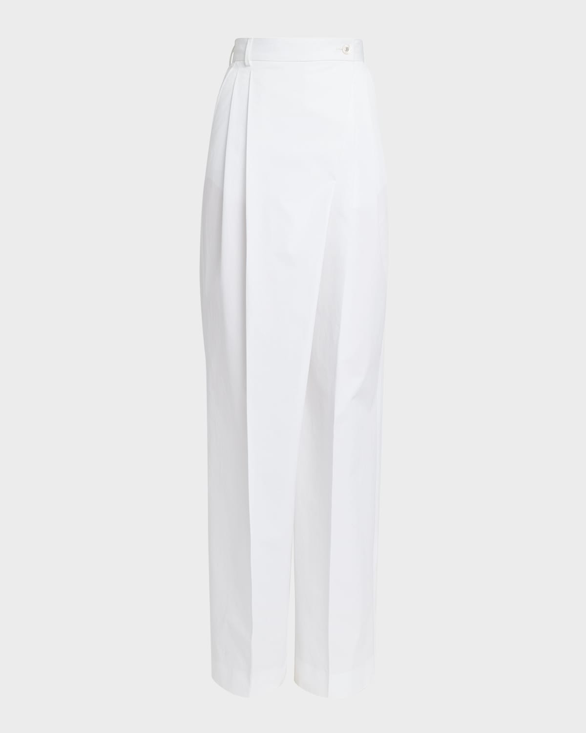 Dolceamp;Gabbana cotton popline flared wideleg pants featuring frontal french pockets and pleating Midrise; sits high on hip Button fly; belt loops Side slip pockets; back welt pockets Full length Relaxed fit Cotton Made in Italy