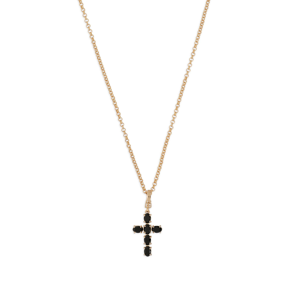 gold-tone polished finish cable-link chain claw/prong setting rhinestone embellishment cross pendant clasp fastening