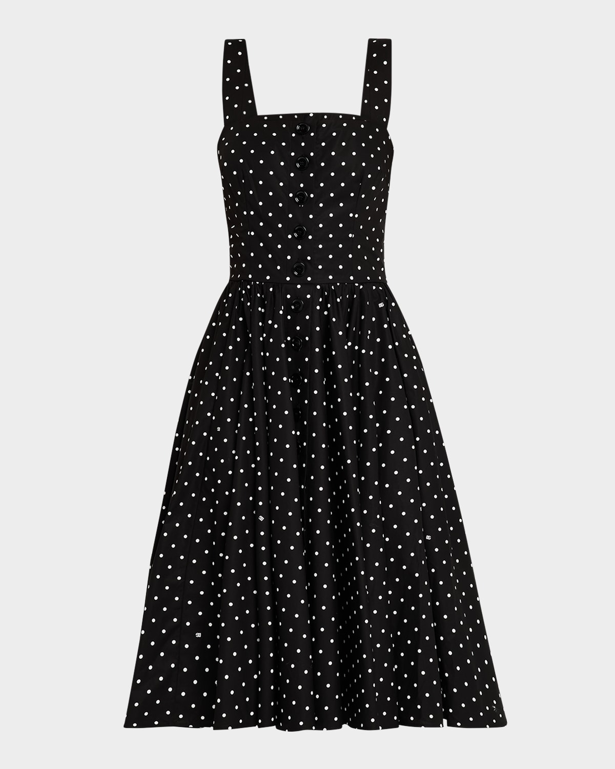 DG Polka Dot Sleeveless Button-Front Cotton Popeline Midi Sundress