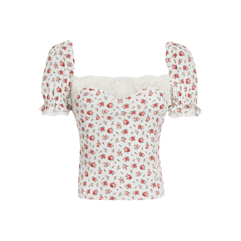 Floral-print Lace-trim Top