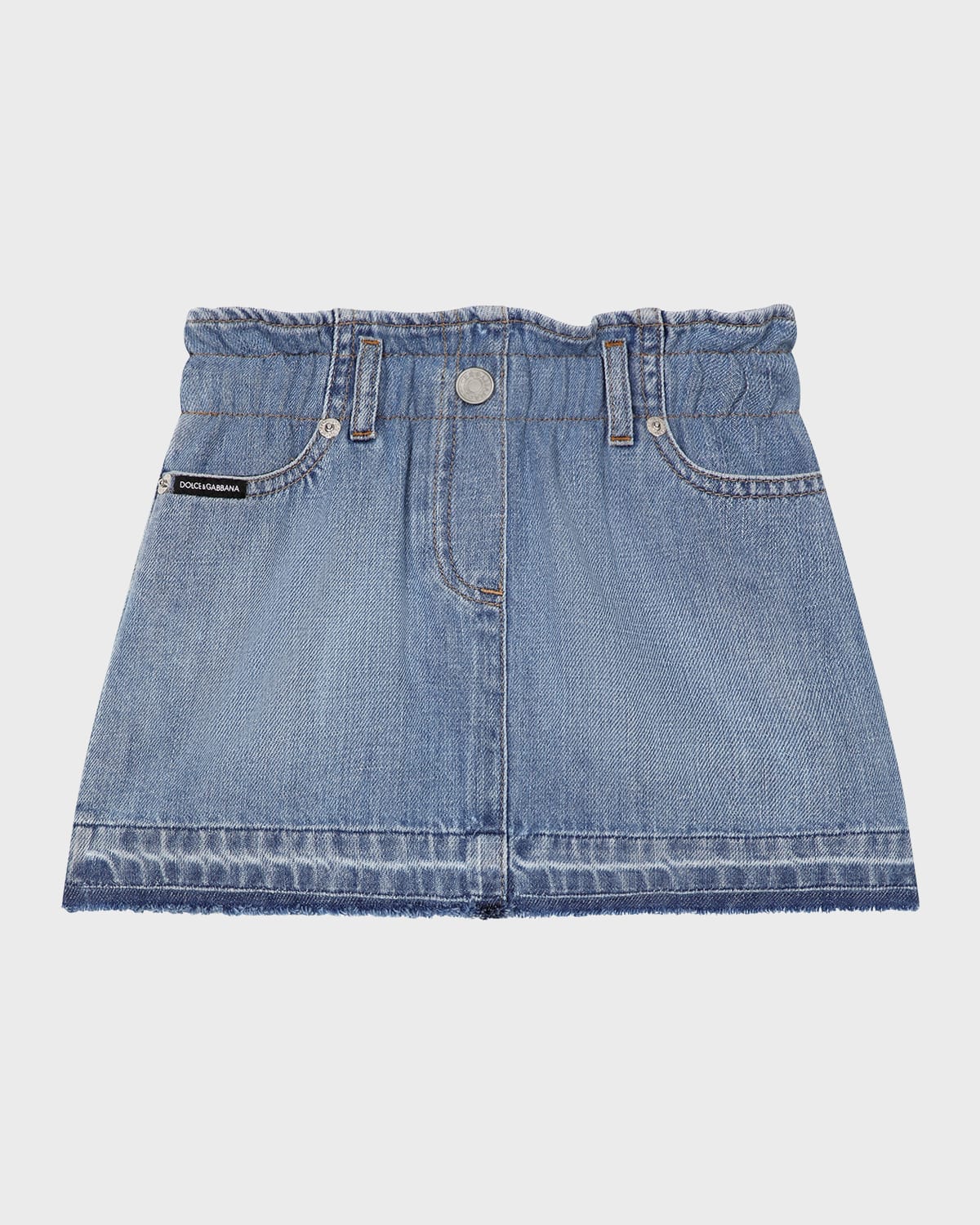 Girl's Logo-Plaque Paperbag Denim Skirt, Size 8-14