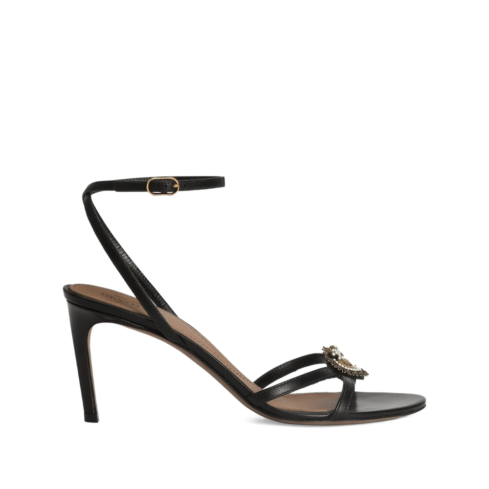 black heart motif buckle fastening stiletto heel strap open toe