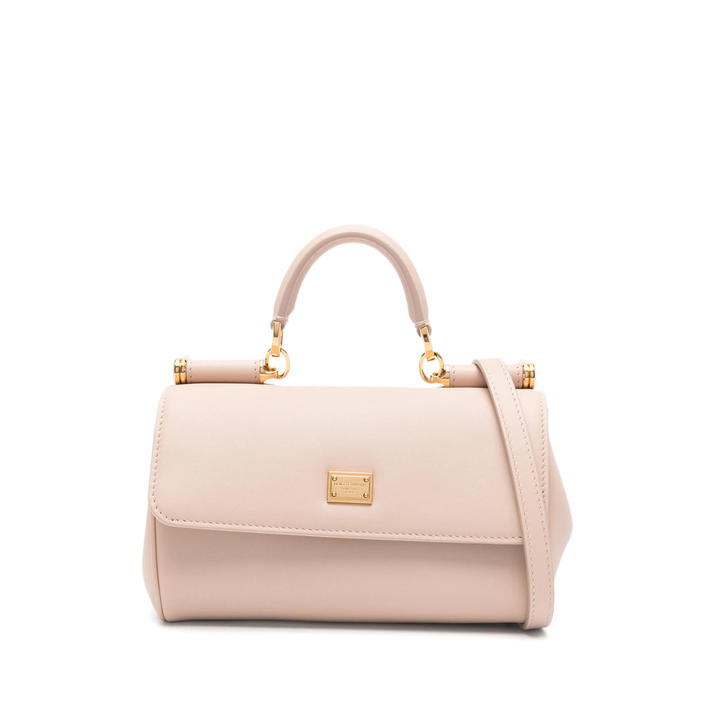 beige front flap top handle removable shoulder strap logo-plaque