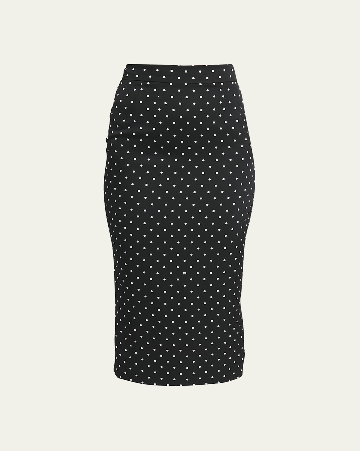 Dolceamp;Gabbana charmeuse midi pencil skirt in an allover polkadot print High rise; banded waist Concealed zip closure Hem falls above the knee Aline silhouette Silk/spandex Made in Italy