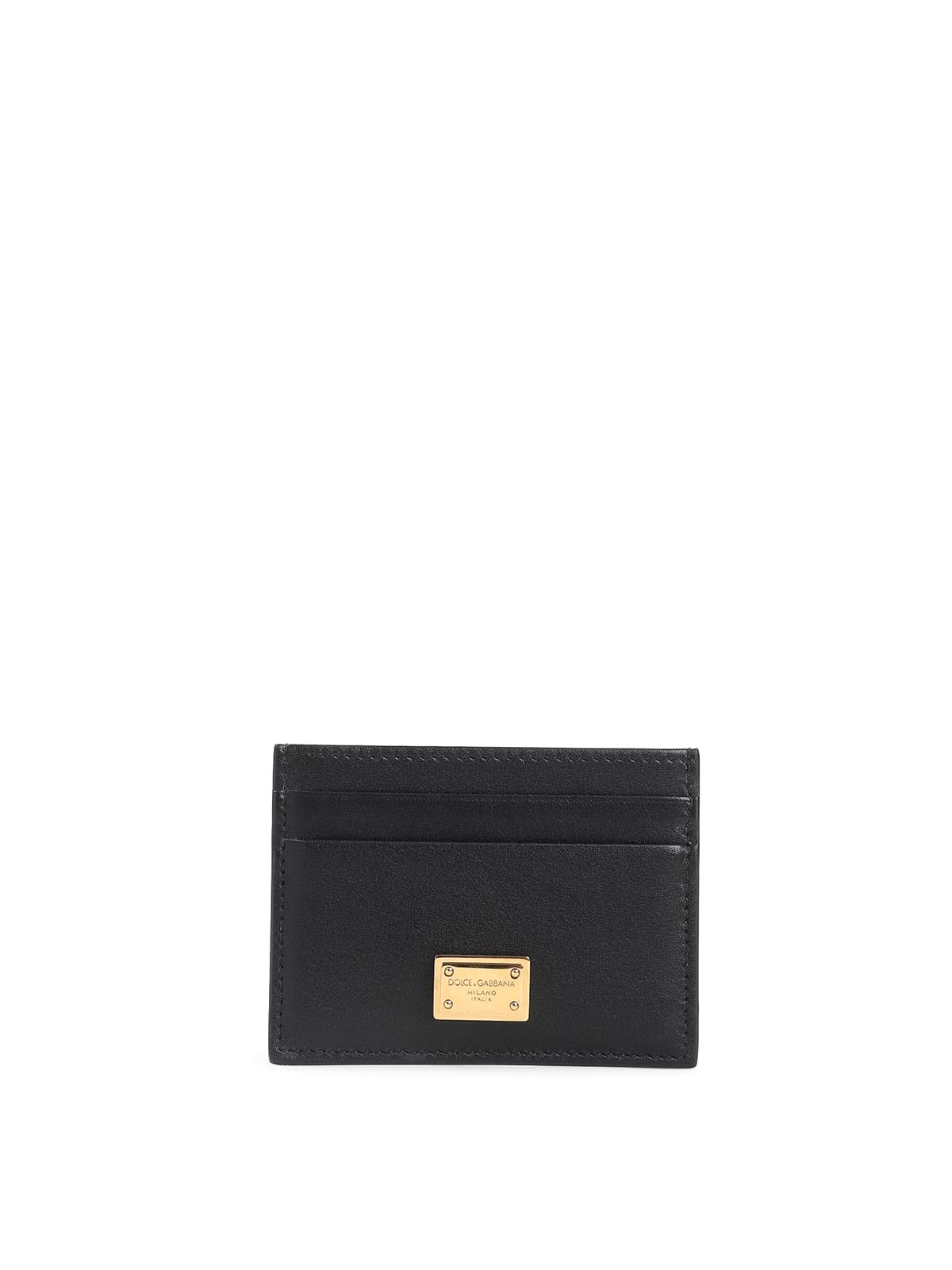 Porte-cartes Dolce & Gabbana noir pour cartes de crédit, porte-cartes noir pur, deux emplacements, compartiment à billets avec logo ton sur le dessus, deux emplacements pour cartes
