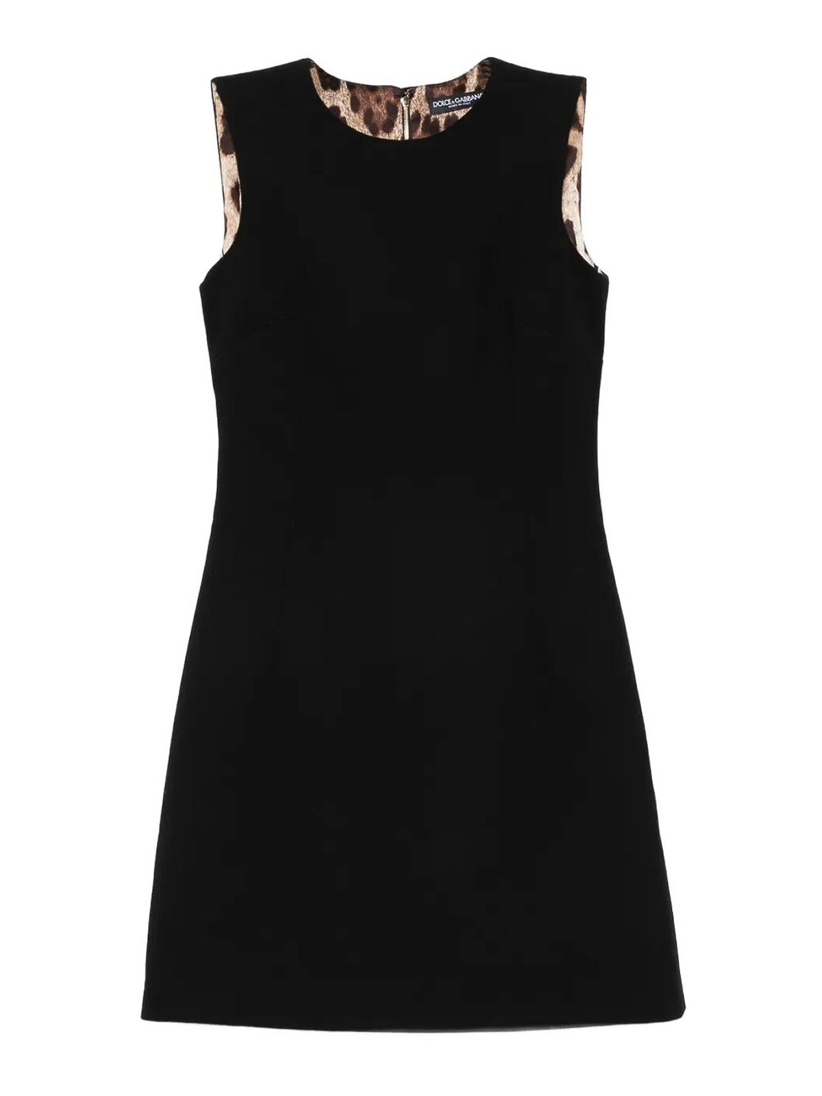 Robe courte en crêpe (A), col rond, sans manches, fermeture éclair arrière extensible et crochet, et barre, la pièce mesure à partir de la taille