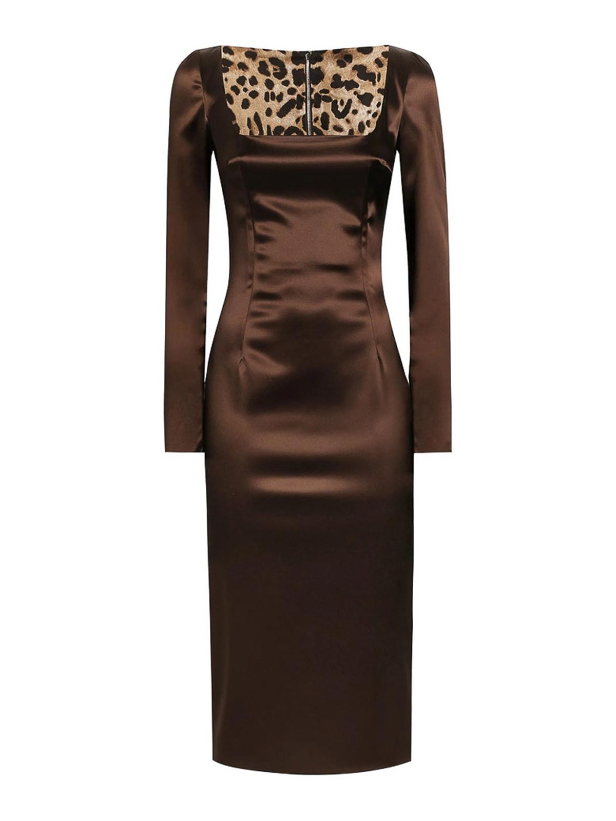 Encolure carrée marron foncé, manches longues, fente dans le dos