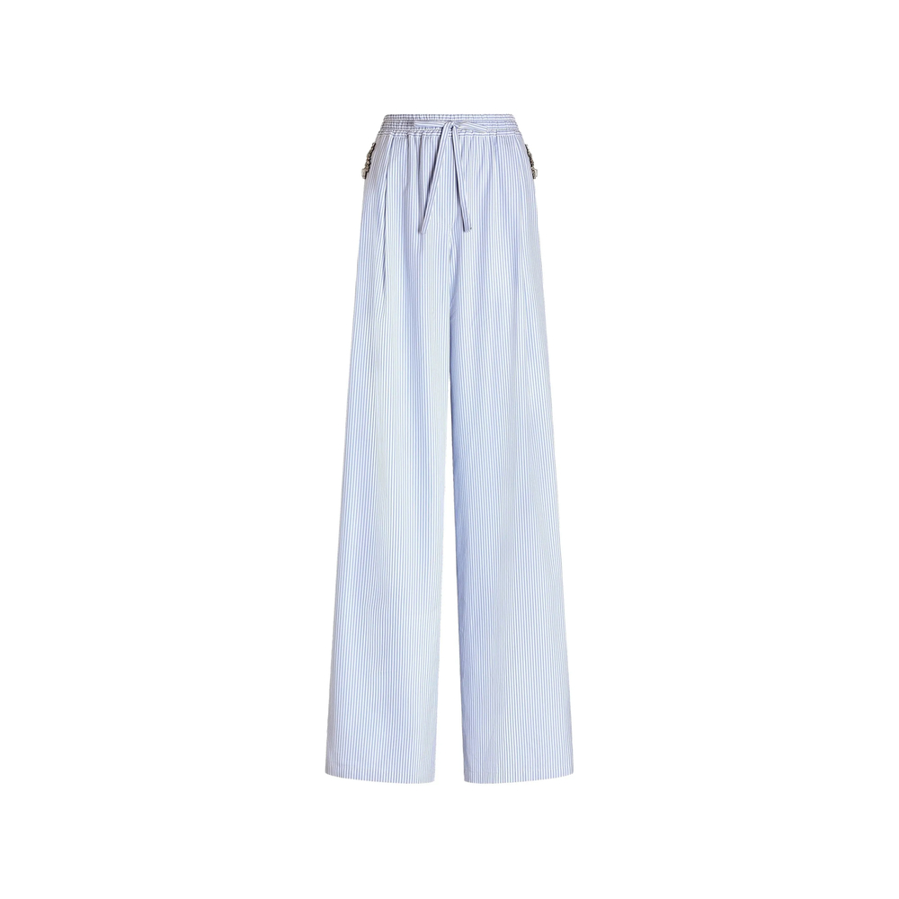 multi-colored low waist waistband with internal elastic and matching fabric drawstring front two pleats at the waist on each side fake lacing in the center front french pockets back pocket applied applications on the front the model is 175 cm tall and wears size 40 IT made in Italy Relaxed fit. Consider taking a size smaller if you prefer a tighter fit.