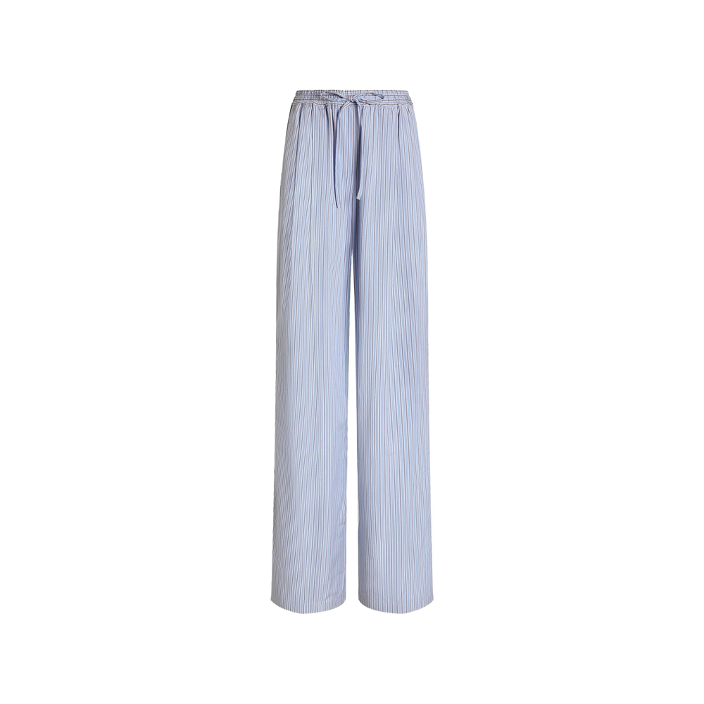 light blue striped drawstring fastening elasticated waistband back patch pocket wide leg