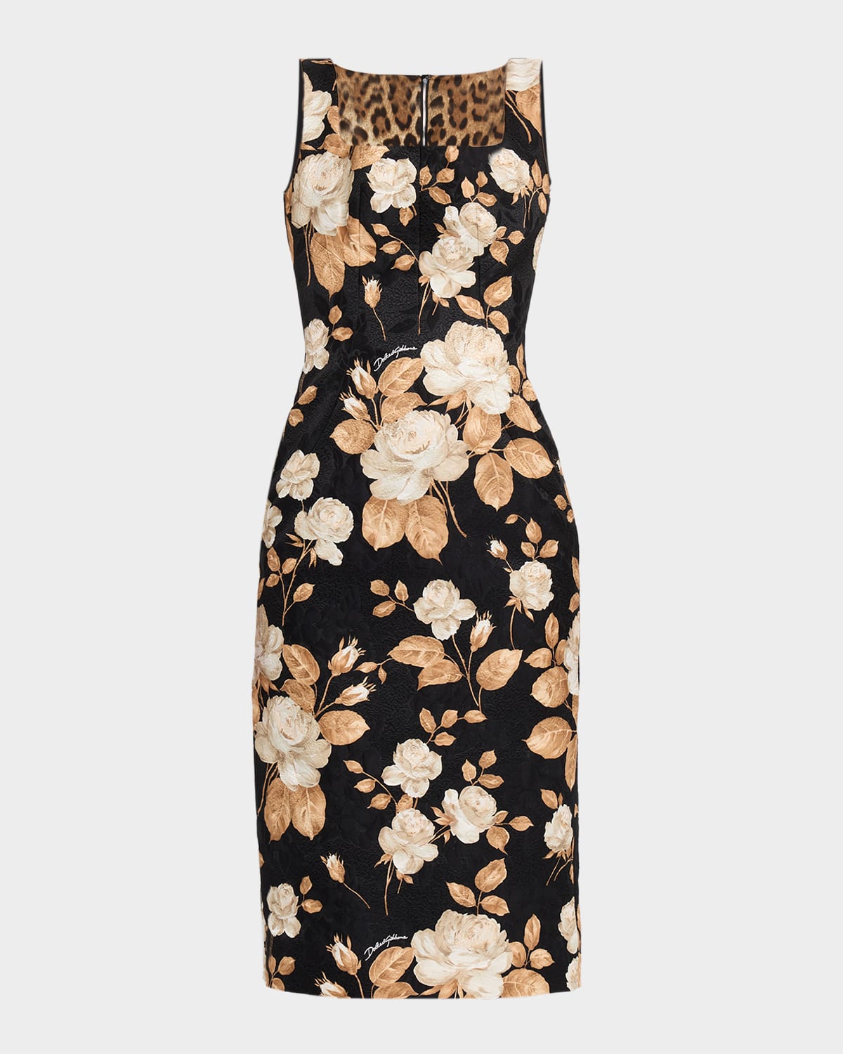Dolceamp;Gabbana dress is crafted of brocade with a vintage floral motif, adding a touch of sophisticated femininity, making any occasion unique and memorable. Square neckline Sleeveless Sheath silhouette Hem falls below the knee Walking vent back Concealed back zip Cotton Made in Italy