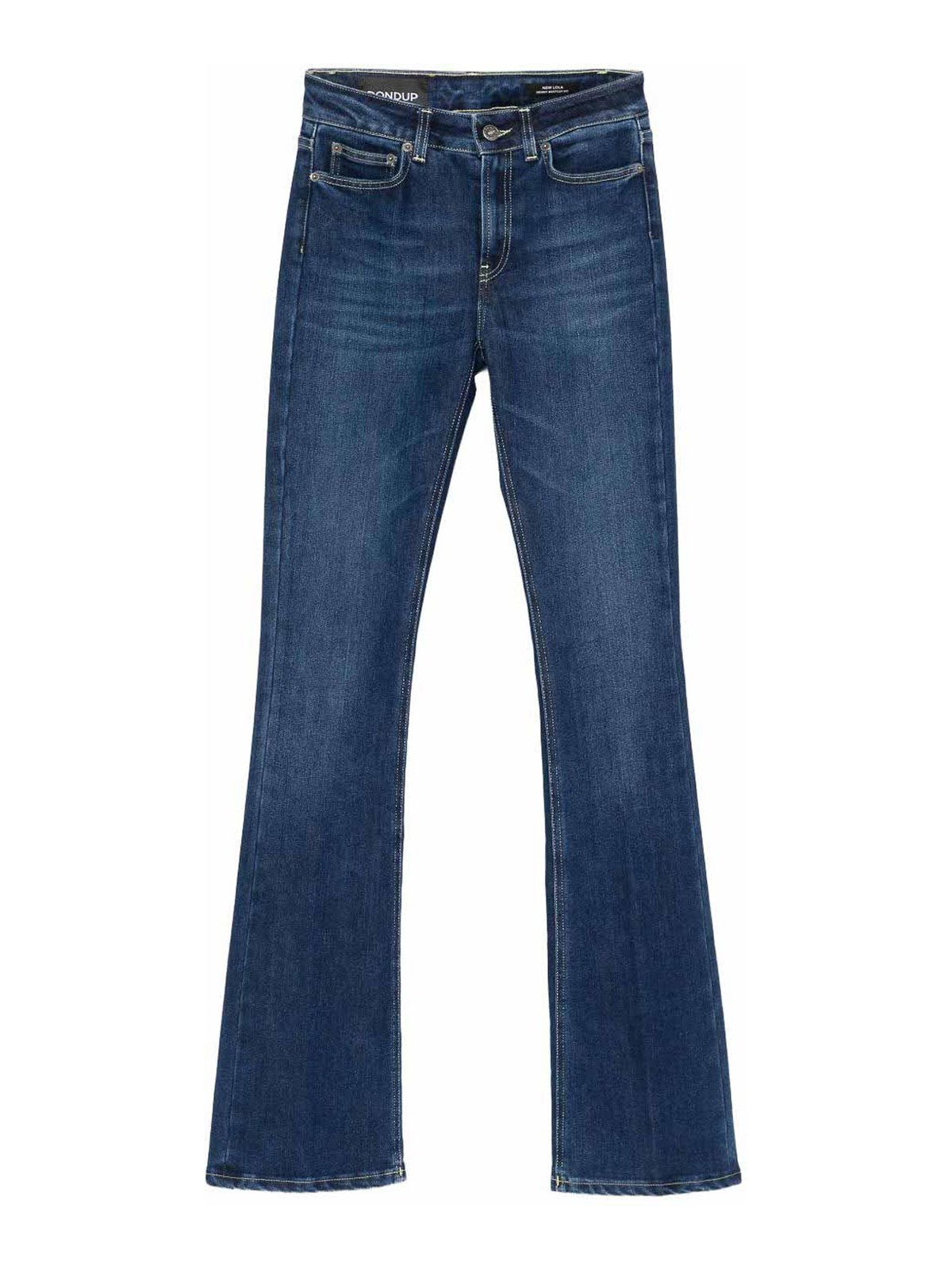 Passants de ceinture boutonnés à cinq poches en jean bleu