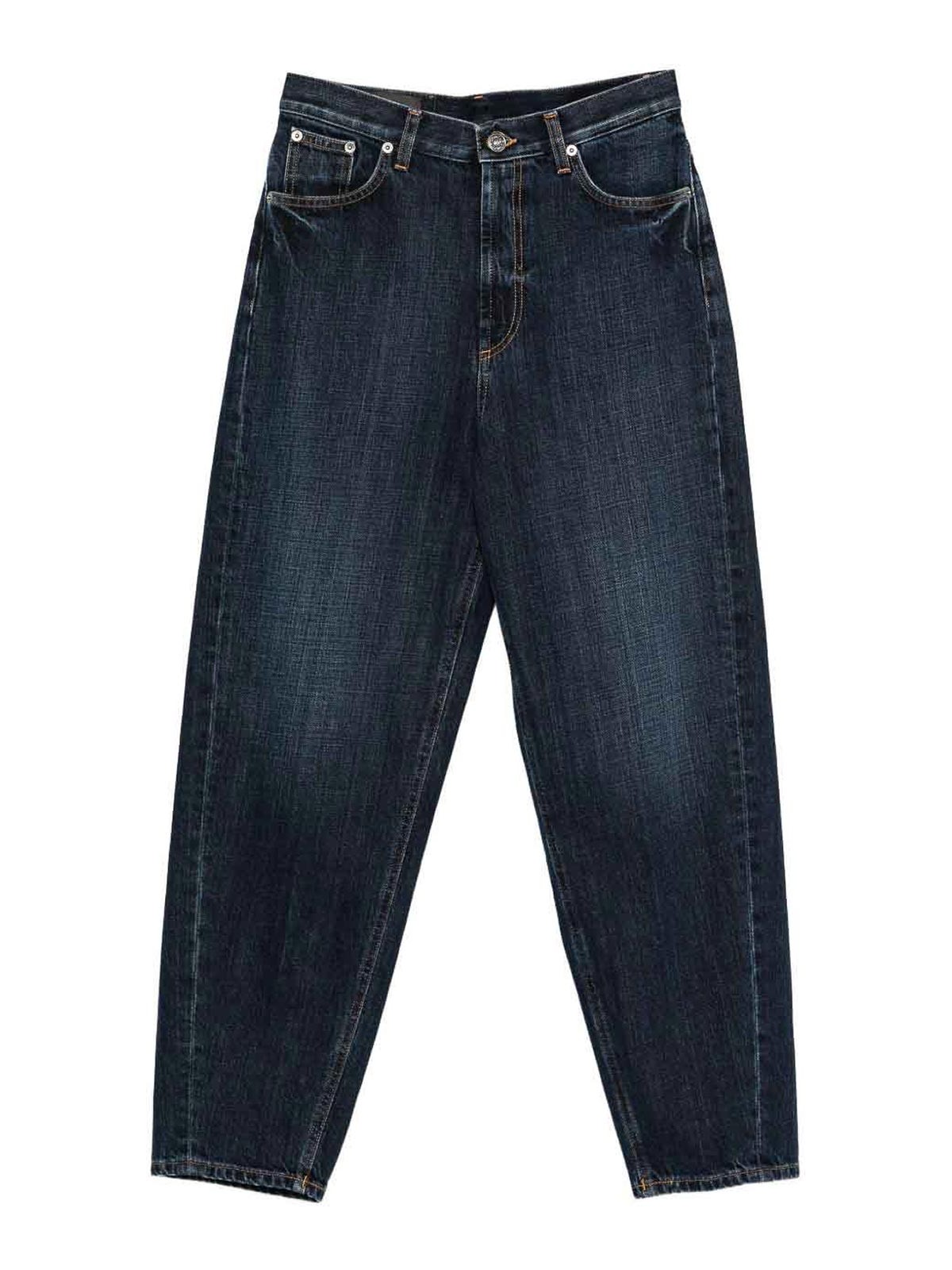 Ceinture bleue avec boutons et passants zippés, cinq poches classiques