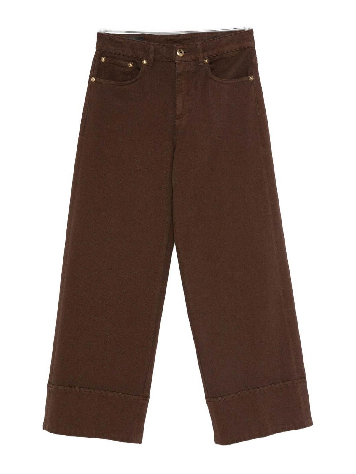 Braguette boutonnée marron classique à cinq poches, passants de ceinture à ourlet droit et extensibles