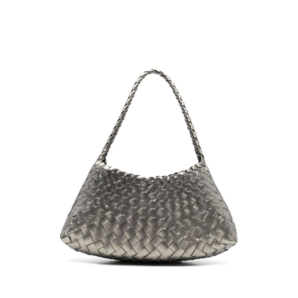 silver-tone leather metallic finish interwoven design single braided shoulder strap unlined main compartment internal logo plaque This piece comes complete with a protective dust bag.