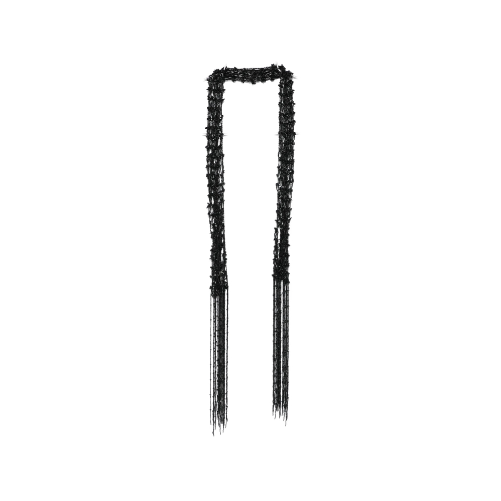black bead embellishment fringed edge open knit