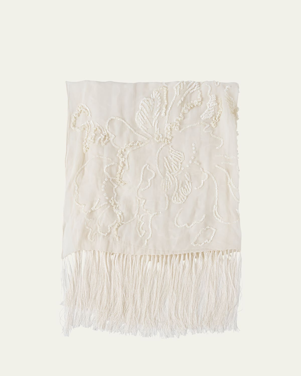 Dries Van Noten "Felicia" scarf is a striking accessory featuring floral tonal sequin embellishment May be styled in multiple ways Fringe hem Viscose Dry clean Imported