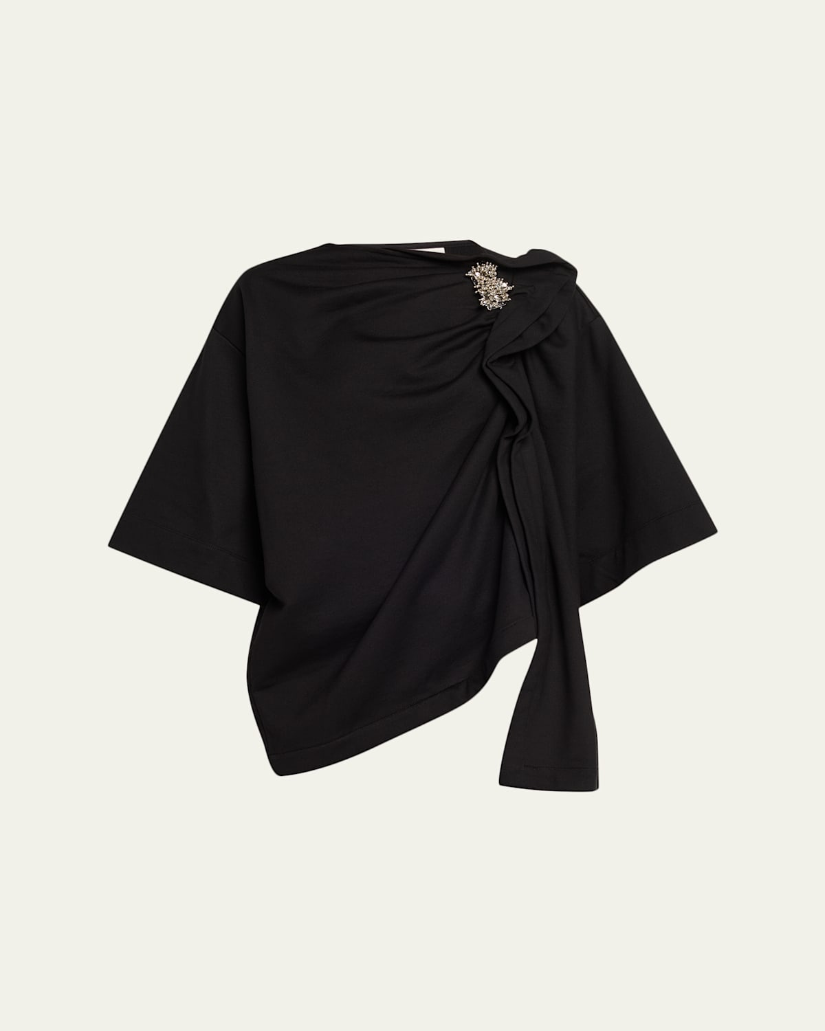 Dries Van Noten "Harnam" Tshirt features draped gathering embellished with bead embroidery High neckline Short sleeves Oversized fit Pullover style Cotton Imported