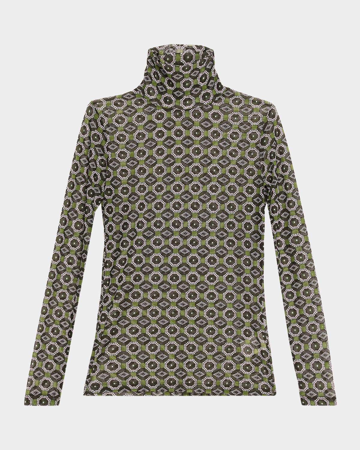 The "Hoyser" blouse by Dries Van Noten is decorated with a bold, geometric print perfect for layering or wearing on its own Turtleneck Long sleeves Slim fit Hip length Pullover style Nylon/polyamide/elastane Imported